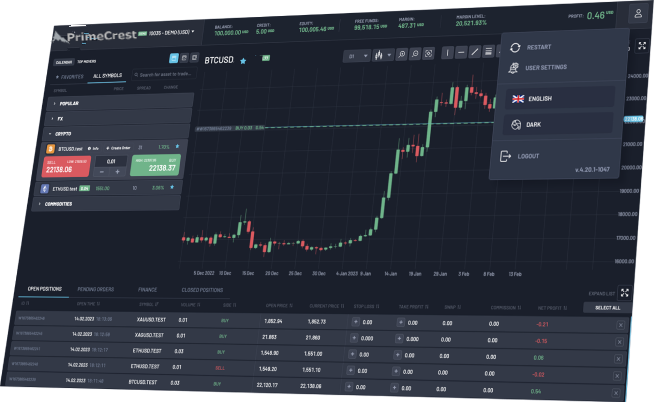 Bring your trading experience to the new level. Access the PMERS trading platform from anywhere with a stable internet connection. Benefit from intuitive design. No need for extended guidance, complicated installations, or additional programs. Get ready to place your first trade in just a few taps. Cutting-edge technologies, high-speed execution, complete set of tools. Always with you.
